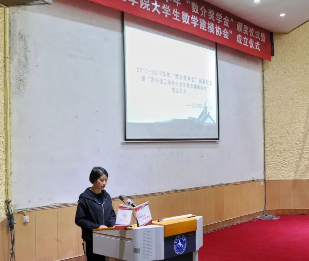 仪式开始,首先由理学院组织员蒙蔺老师宣读表彰决定,宣布获奖的六位学生名单。由理学院院长李智玲老师为获奖学生颁发证书。而后,获得“ALEIYE-数介奖学金”的学生代表戴登鸾发表了精彩的获奖感言。在发言中,戴登鸾同学首先表示了对贵州贵安新区数介科技有限公司的尊敬与感谢,同时也表达了对老师谆谆教导的感激之情并慷慨地和同学们分享了学习的方法和技巧。