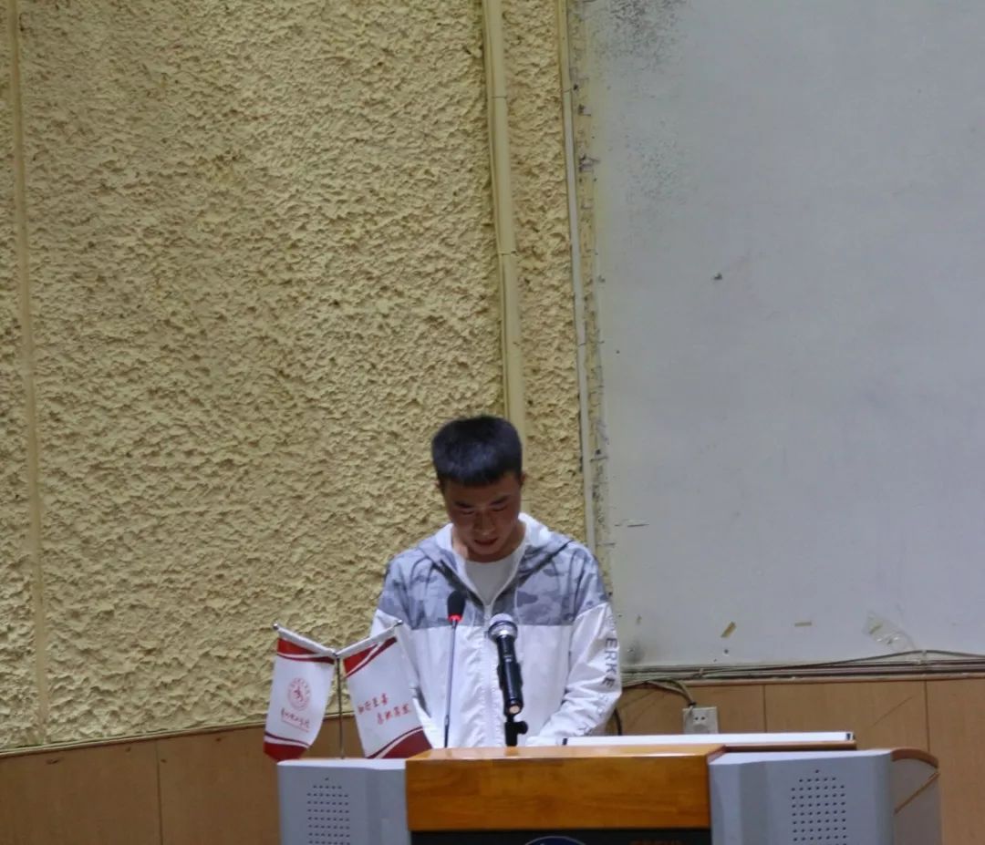 授牌结束后,贵州理工学院数学建模协会负责人刘庆松上台发言,他在发言中介绍了学习数学建模的重要性,带动了同学们了解参与数学建模协会的积极性。