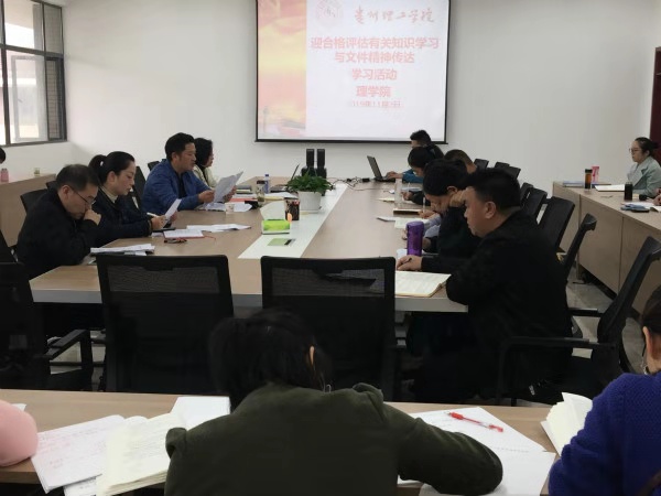 为顺利完成中国足球彩票:本科教学合格评估工作,11月2日14:30,理学院在贵州理工学院贵安校区知行楼五楼理学院会议室召开集中学习会议。