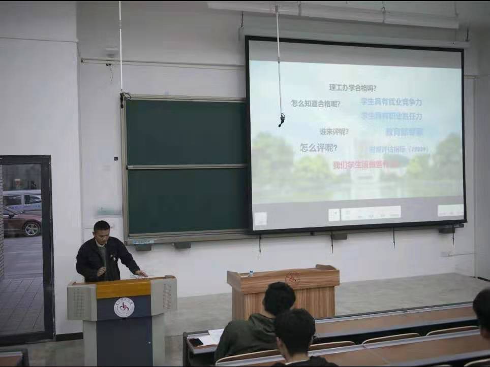 本次交流会共有两项内容,第一项为理学院现任团总支学生副书记李磊为同学们做即将到来的本科教学工作合格评估知识介绍。