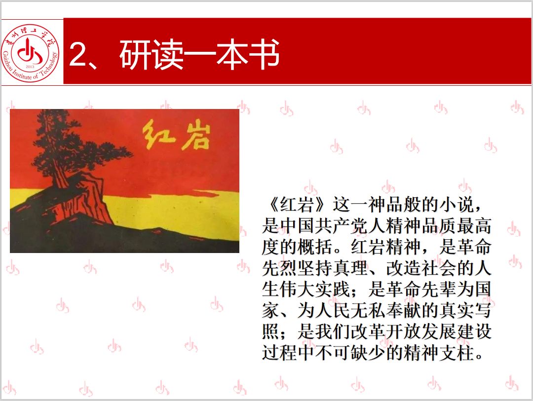 研读一本书的部分,雷艳江同学在班会中向大家推荐红色经典小说《红岩》,分享了书中革命党员在面对国民党反动派绞杀做出的英勇抵抗和机智斗争的故事,提醒大家目前国内疫情虽然已经得到有效控制,但不可放松警惕,务必服从学校的防控工作安排,承担防疫责任、履行防疫义务,共同打赢疫情防控阻击战。通过本次班会树立了大家的家国情怀,让大家认识到了国家精神,正确理性对待疫情。