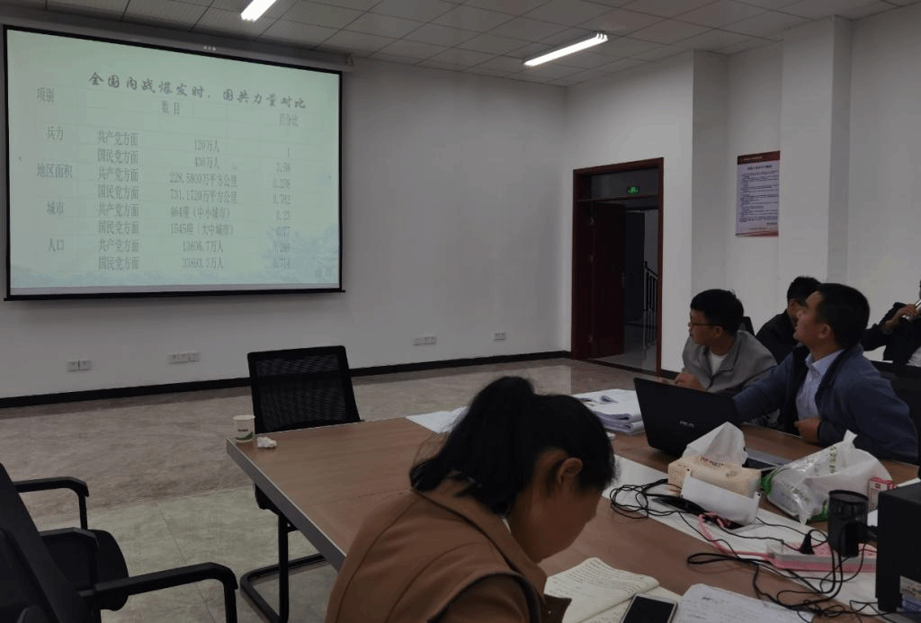 本次党史课程由教师党支部宣传委员高立科同志主讲。高立科做了充分准备,他认真汇总了解放战争时期党的发展史,他从兵力、地区面积、占有城市数目、人口等多个角度分析了国共双方在解放战争期间的力量变化。在明显处于弱势的情况下,中国共产党依靠人民完成了对中国的解放。