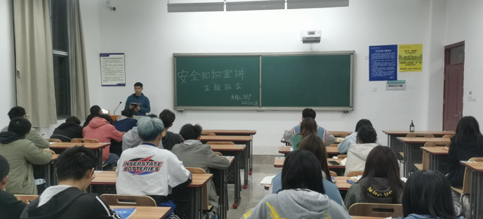 班会开始, 安全委员刘广带领全班同学学习了寝室用电安全。众所周知,大学生用电安全一直以来都是个安全隐患的重中之重 ,即使不断强调不断宣讲 依旧会发生一些不可预料的安全事故 ,对此 ,本班安全委员刘广为同学们讲述了宿舍用电安全的注意事项 。随后,安全委员还带领同学们学习了防诈骗的相关知识 ,虽三令五申却仍有人会上当受骗 ,加之该诈骗行为日益猖獗 ,我们更该加大力度 ,宣讲校园安全之防诈骗知识 ,让同学们时刻警惕!