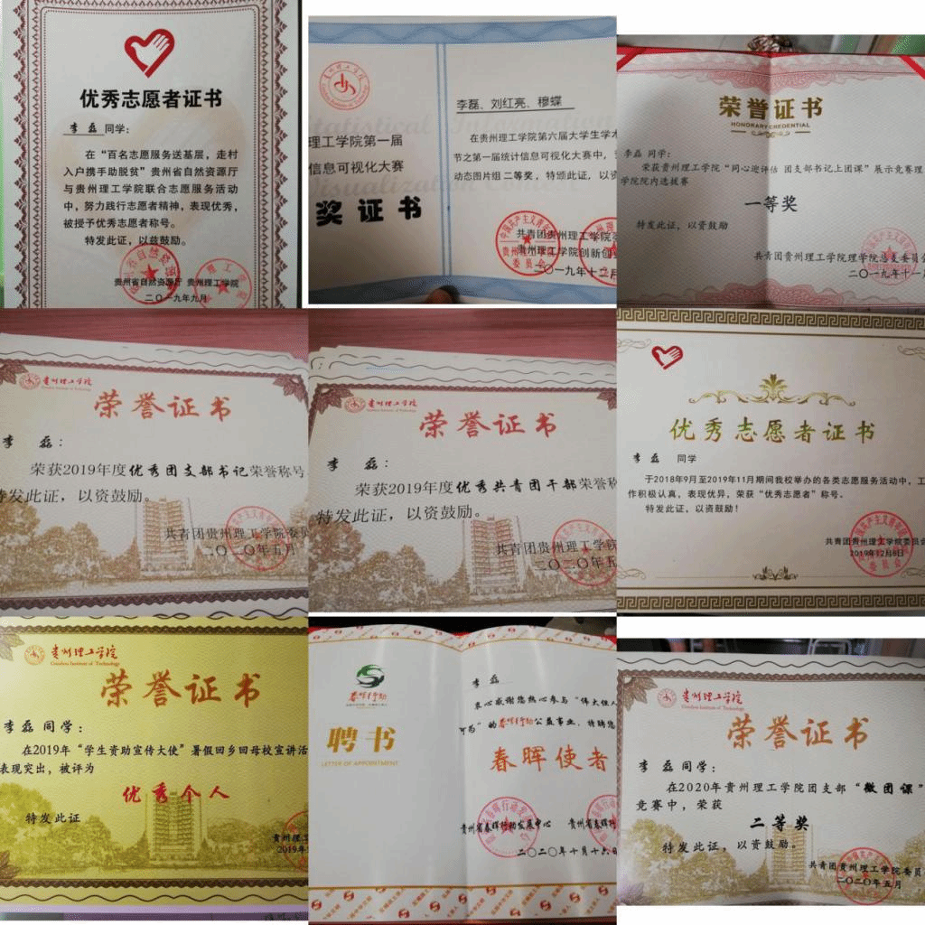 2019年7月被选为贵州理工学院“学生资助宣传大使”;同时被评为“优秀个人”;