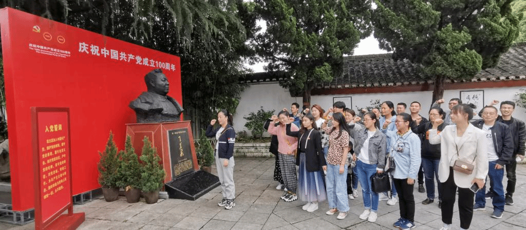 “我志愿加入中国共产党,拥护党的纲领,遵守党的章程······”在王若飞铜像前,大家重温入党誓词,一声声对党的庄严誓言,激荡人心,催人奋进。