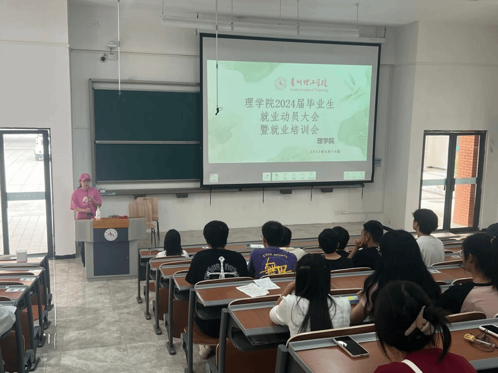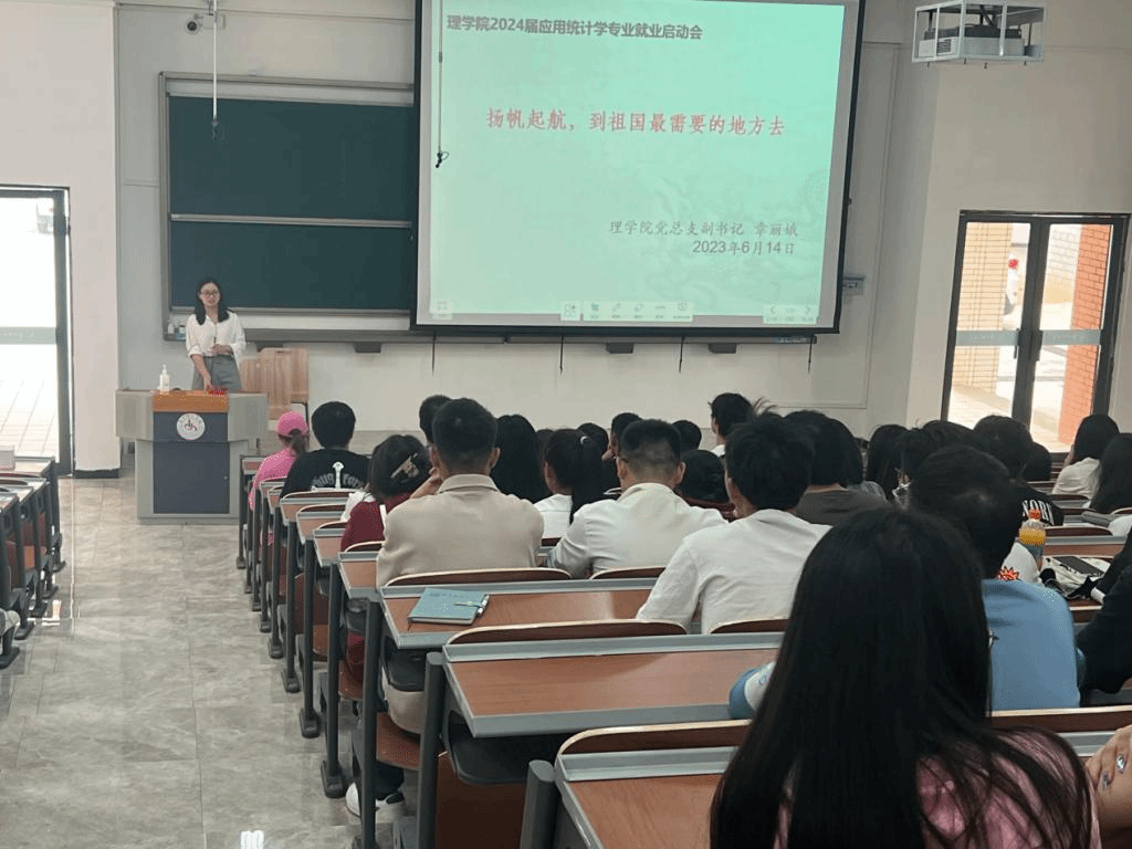 为帮助2024届毕业生了解当前就业形势,积极做好2024届毕业生就业动员和培训工作,2023年6月14日,理学院在G1110教室开展了“理学院2024届毕业生就业动员大会暨就业培训会”,2024届全体毕业生参加,理学院党总支副书记章丽娥、2020级辅导员张梦出席动员大会。