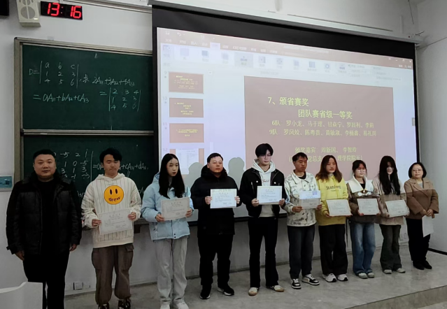 竞赛负责老师刘广群进行了赛事总结和展望,他说,本次竞赛取得的良好成绩与同学们的辛勤准备工作密不可分,希望同学们再接再励,积极参加西南赛区竞赛,争取取得更好的成绩。