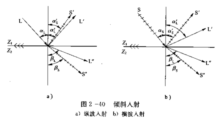 图中上下两种介质均为固体,反射及折射波中都有纵(L)横(S)波。