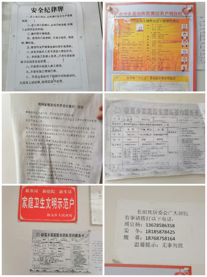 精英小队在走访过程中,发现居民房屋墙上都贴着很多信息(例:“安全纪律牌”,“搬迁农户明白栏”,“家庭医生团队签约服务卡”等),让搬迁居民享受到更大的医疗卫生保障,给居民一个更安心、更安全的环境。