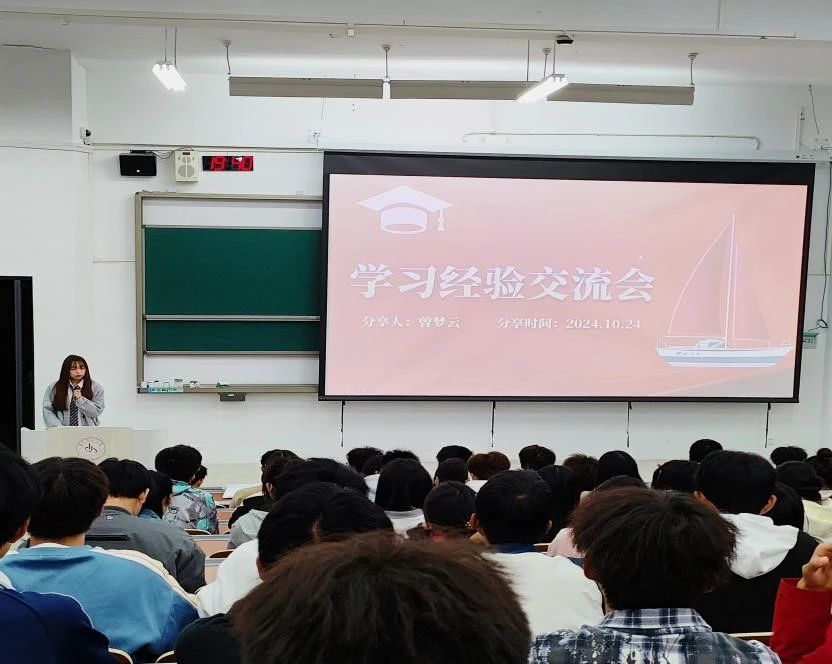 为了进一步加强学院的学风建设,充分展现榜样的示范和引领作用,激发同学们的学习热情,并明确大学阶段的奋斗目标,理学院于2024年10月24日晚在G2109举办了学习经验分享交流会。本次分享会邀请到2023-2024学年国家奖学金得主——理学院统计211班的曾梦云同学,她与大家分享了学习心得。理学院2024级全体同学参加了此次学习经验交流会。