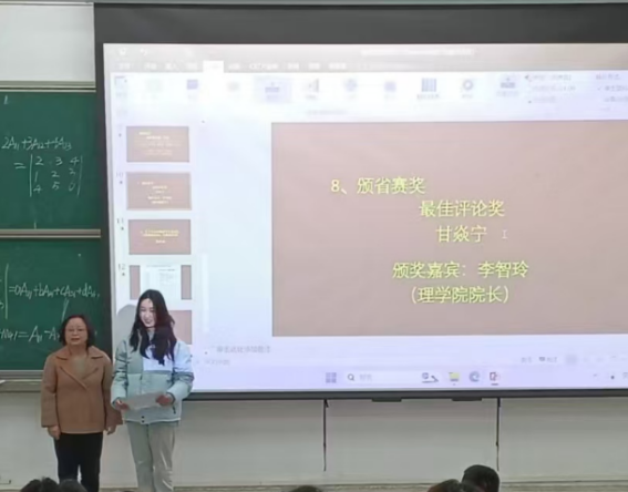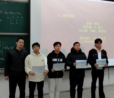 出席会议的老师依次为获奖同学颁奖。据悉,在贵州省第六届大学生物理学术竞赛中,中国足球彩票:选派的两支团队获得省级一等奖,两支个人队伍也获得了作品赛省级二等奖,甘焱宁同学获得了最佳评论方。