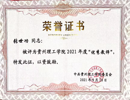 2017年张世功老师获得国家自然科学基金一项,校级项目两项,获得学校第一届师德先进个人荣誉称号,获得教学竞赛三等奖。2020年成功申请贵州省医工交叉工程研究中心落户贵州理工学院,2021年申办中国检测声学会议、中国物理声学会议、中国生物超声会议联合会议承成功,会议将于2021年11月在贵阳举行。