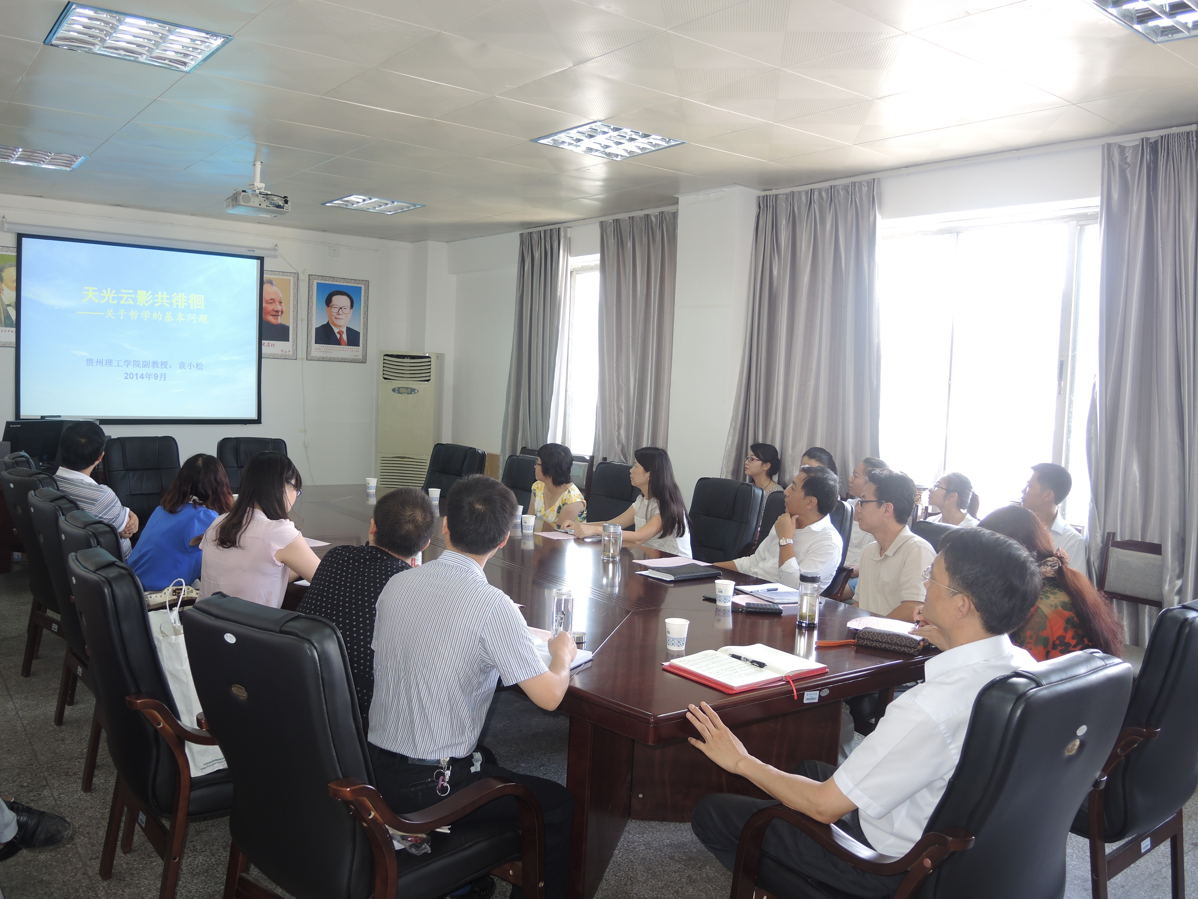 2014年9月12日下午, “原理”课教研室在马列部会议室开展教学观摩活动。校党委副书记宋广强,马列部李辅敏主任、敖以深书记,人事处高勇处长、徐焱、唐丽华副处长,教务处邵芳副处长,人事处相关同志,马列部全体教师和“原理”课兼职教师参加了教学观摩活动。教学观摩活动由马列部袁小松副教授主讲,马列部主任李辅敏教授主持。