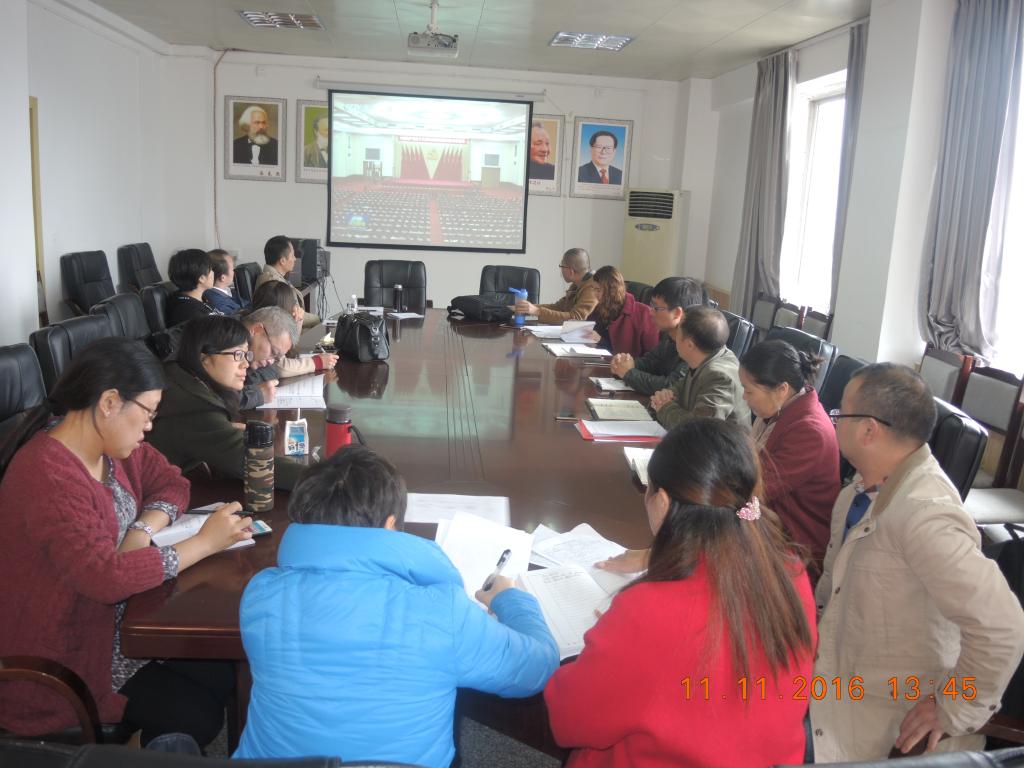 本网讯(张建军供稿)11月11日中午13点30分,马列主义教学部在主楼1125会议室召开专题学习会议,组织全体教师观看中央电视台播送的《中国共产党第十八届中央委员会第六次全体会议公报》视频,会议由王忠奎副书记主持。