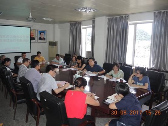 本网讯(张建军供稿) 2017年8月30日下午14:00,龙奋杰校长率学工部、教务处、校办等部门负责人到马列部开展思政课建设专题调研,会议由敖以深主任主持,部门全体教师参加了会议。