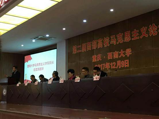 本网讯(张建军供稿)12月9日,第二届西部高校马克思主义论坛在重庆西南大学召开。会上,来自全国60余所高校的马克思主义学院负责人、马克思主义学科国内专家共100余名参会,会议围绕“贯彻党的十九大精神,提升高校马克思主义学院建设质量”的主题开展交流和讨论。中国足球彩票:马克思主义学院敖以深教授应邀参加了会议。