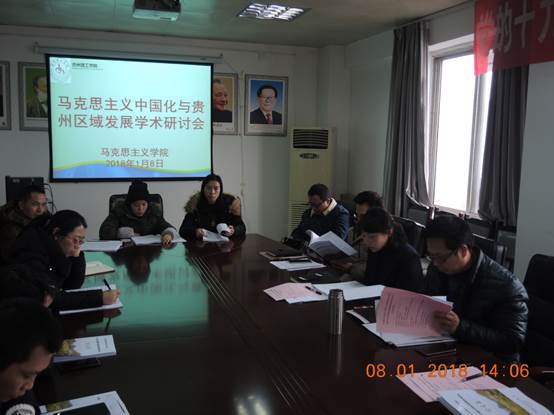(张建军供稿)1月8日,马克思主义学院召开校级重点(培育)学科马克思主义理论年度总结及“马克思主义中国化与贵州区域发展”学术研讨会。会议由马克思主义学院院长、马克思主义理论重点(培育)学科带头人敖以深教授主持。党总支书记金敏,副书记王忠奎,副院长欧阳德君,以及重点(培育)学科组成员和学校思想政治理论课部分兼职教师参加了会议。