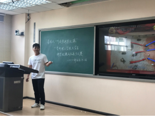 本网讯(马克思主义学院 孙瑞/文、图)2018年5月22日,“请抬头—听我来讲思政课”—贵州理工学院大学生讲思政课风采展示大赛在三教605举行。为深入学习宣传贯彻党的十九大精神,推动习近平新时代中国特色社会主义思想进教材、进课堂、进头脑,切实增强大学生对思政课的获得感,发挥思想政治教育主渠道作用,突显大学生在思政课学习中的主体地位。马克思主义学院特组织举办了此次活动。