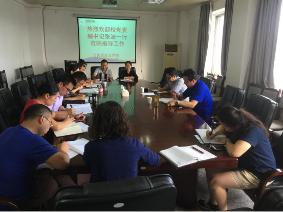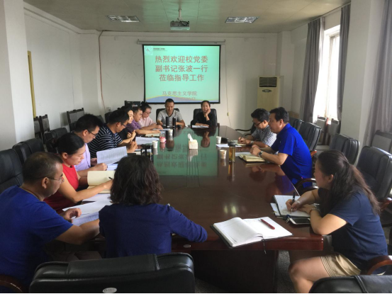 本网讯(马克思主义学院 张建军/文 张建军/图)2018年8月29日上午,校党委副书记张波和党办主任高勇到马克思主义学院开展调研,会议由学院院长敖以深主持,学院处科级干部参加了会议。