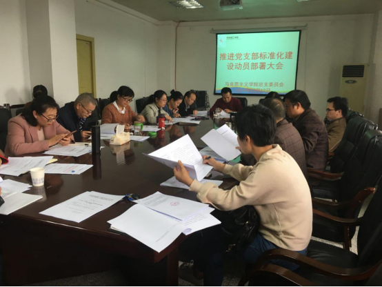 本网讯(马克思主义学院 葛楠/文 刘玲/图)马克思主义学院于10月12日中午在1125会议室召开“推进党支部标准化建设动员部署大会”。全体党员同志在王忠奎副书记的带领下,认真研读中国足球彩票《贵州理工学院党支部标准化建设实施方案》。