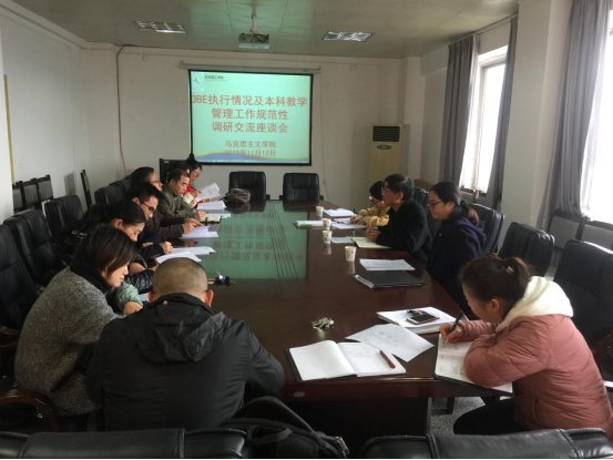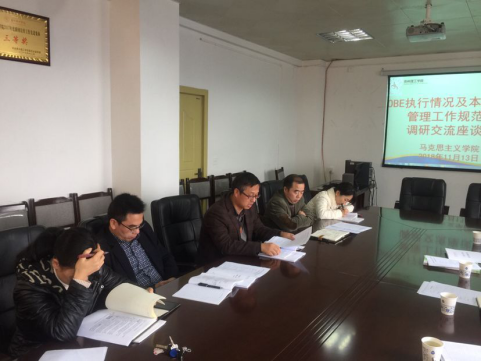 本网讯(马克思主义学院 张建军/文 张建军/图),11月13日下午,学校评估工作第二调研小组文方主任、顾亚丽主任等一行到我院开展OBE执行情况及本科教学管理工作规范性调研并交流座谈,马克思主义学院评建工作小组组长敖以深院长,副组长王忠奎副书记、欧阳德君副院长以及各科室、教研室负责人参加了交流座谈。