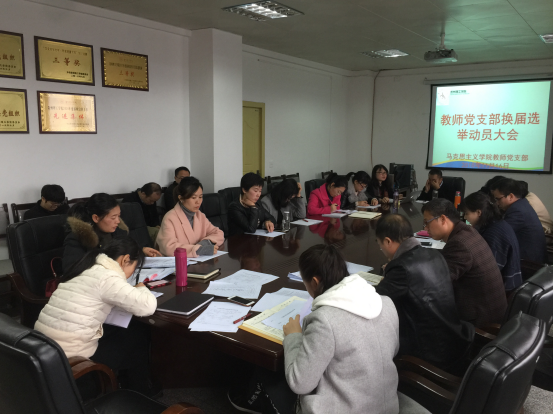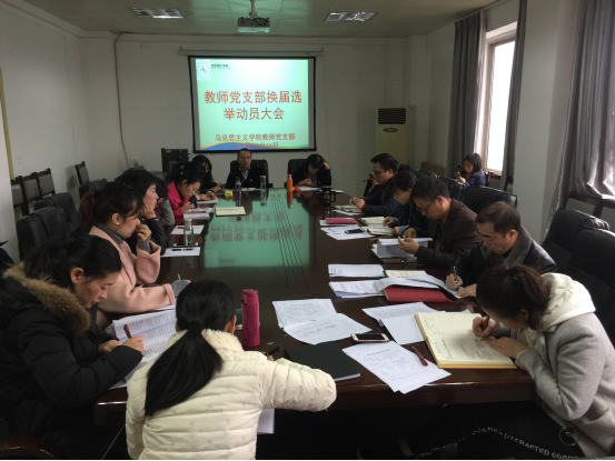 本网讯(马克思主义学院葛楠/文 张建军/图),马克思主义学院教师党支部换届选举动员大会于2018年11月16日下午在1125会议室顺利召开。会议由王忠奎副书记主持,马克思主义学院金敏书记、敖以深院长、欧阳德君副院长以及其他党员参加了此次会议。