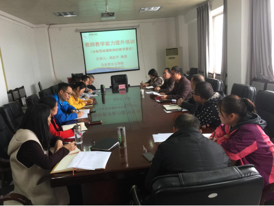 本网讯(马克思主义学院 刘玲/文 张建军/图)11月30日,贵阳中医学院马克思主义学院院长杨近平教授应邀到我院为思政课教师作“教师教学能力提升”专题培训,我院敖以深院长、王忠奎副书记、欧阳德君副院长及思政课专任教师,部分兼职教师参加了培训。