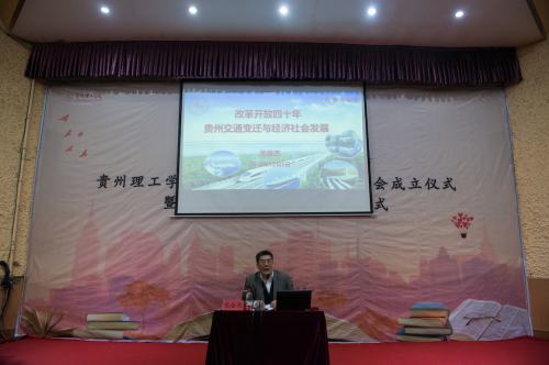 龙奋杰从古代贵州交通;近现代贵州交通;当代贵州交通;交通建设与贵州经济社会协同发展面临的问题和新时代交通助推贵州经济社会发展的研究与思考等五个方面进行了讲授。整场报告思路清晰、论述有据,既生动解读了贵州交通的历史变迁,又全方位展示了贵州经济社会的发展。
