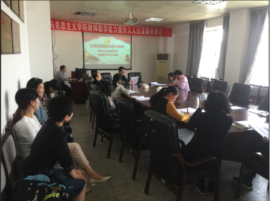 (本网讯 马克思主义学院 王香莲/文 张建军/图)为大力弘扬爱国爱校奋斗精神,推动我院党员在迎评促建中建功立业,确保学校顺利通过合格评估。4月19日下午,我院教师党支部在行政楼11楼1125会议室开展以“祖国在心中?与校共成长?同心迎评估”为主题的党日活动。活动由王香莲同志主持。