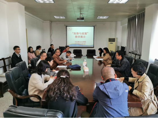 (本网讯 马克思主义学院 李娜/文 张建军/图 )11月1日上午,马克思主义学院“形势与政策”教研室在1125会议室开展教学展示活动。活动由“形势与政策”教研室主任孙瑞主持,学院领导、各教研室负责人及本学期形势与政策授课教师参加了活动。