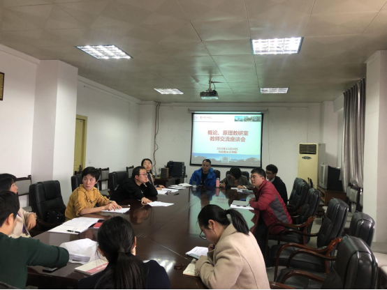 (本网讯 马克思主义学院 李娜/图文)11月16日上午,我院“概论”、“原理”教研室召开迎评教师座谈会,欧阳德君副院长、两个教研室负责人及部分教研室成员参加了会议。