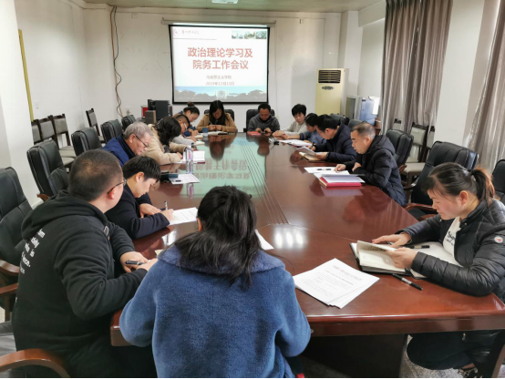 (本网讯 马克思主义学院 李娜/文 张建军/图 )12月13日下午,我院召开政治理论学习及院务工作会议,会议由常务副院长敖以深主持,全体教职工参加了会议。