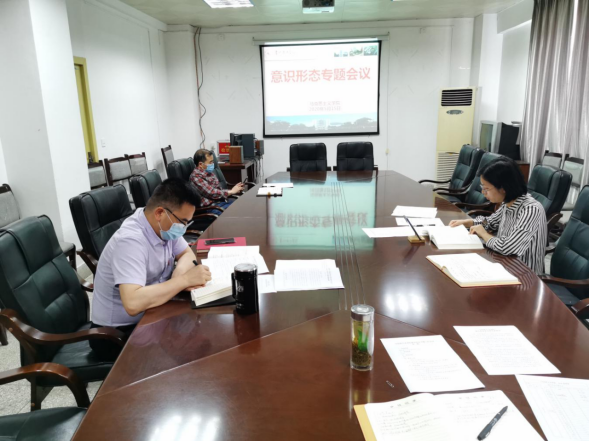 (本网讯 马克思主义学院 张建军文/图 )为进一步抓紧抓好学院意识形态工作,5月15日下午,马克思主义学院在行政楼1125会议室采取“现场+视频”会议形式召开意识形态工作专题会议。会议由学院总支书记孟兰同志主持,全体教职工参加。