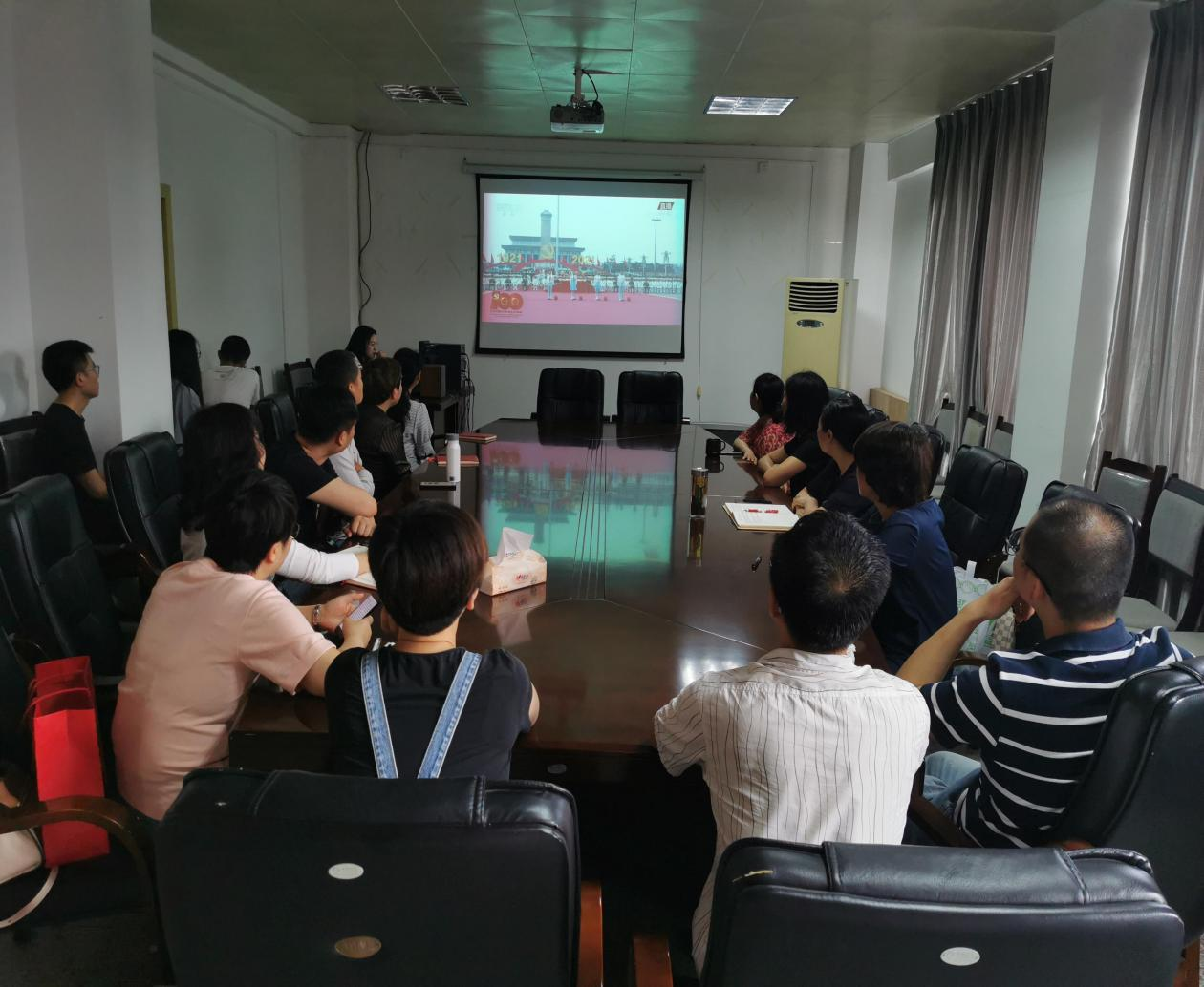 本网讯(马克思主义学院 李娜/文 张建军/图)一世纪风雨兼程,九万里风鹏正举。7月1日上午,庆祝中国共产党成立100周年大会在北京天安门广场隆重举行,中共中央总书记、国家主席、中央军委主席习近平发表重要讲话。我院全体教职工在1125会议室认真收看大会盛况,共同感受振奋人心的时刻,衷心祝愿伟大、光荣、正确的中国共产党青春永驻。