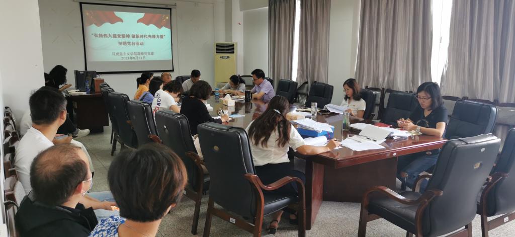 本次主题党日活动是在前一阶段原原本本学习贯彻习近平总书记“七一”重要讲话精神的基础上,以支部读书分享会的形式开展。党员代表们在分享会上积极交流学习心得感悟。郭勤艺同志表示,习总书记提出的伟大建党精神是中国共产党百年来波澜壮阔、奋勇前进,从苦难到辉煌的思想之源、力量之源。在新时代,我们要赓续红色血脉,继承并发扬伟大建党精神,为实现中华民族伟大复兴提供强大精神动力。葛楠同志说,思想政治理论课作为落实高校立德树人根本任务的关键课程与重要阵地,必须充分发挥团结凝聚师生等重要作用,自觉承担起继承与发扬伟大建党精神的光荣任务。石春艳同志说,作为思政课教师,我们要充分挖掘红色故事,引导学生学习李大钊、方志敏等革命先烈的英雄事迹,引导新时代大学生以实现中华民族伟大复兴为己任,勇做走在时代前列的奋进者、开拓者、奉献者,为全面建设社会主义现代化强国贡献力量。