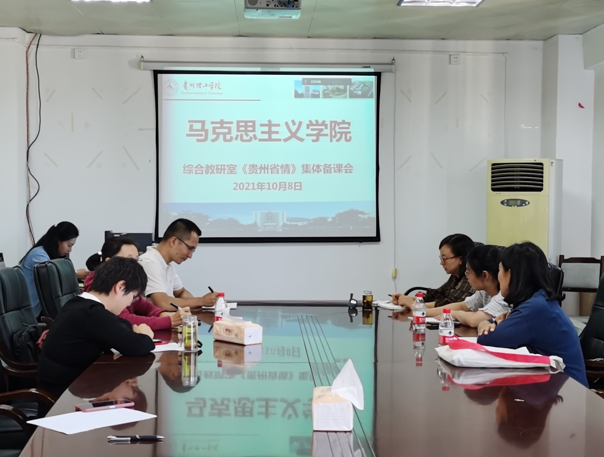 本网讯(马克思主义学院 张璋/文、图)为扎实推动《贵州省情》课程混合教学改革工作,保障18级学生即将开展的线上教学顺利进行,10月8日下午,马克思主义学院综合教研室召开了集体备课会,全体《贵州省情》任课教师参加了会议。