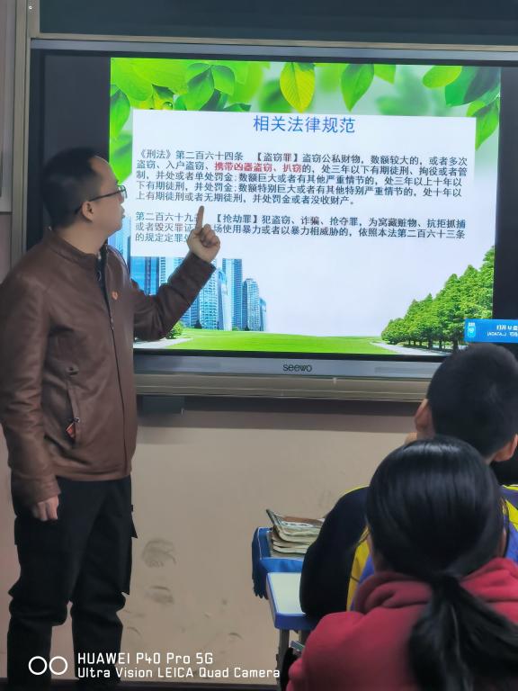 宣讲现场通过以案释法,利用网络热点视频和鲜活案例,通俗易懂的讲解了未成年人犯罪、打架斗殴、校园霸凌及网络诈骗等与青少年紧密相关的法律知识,教育同学们远离犯罪,学法、遵法、守法、用法。宣讲中穿插现场答疑,气氛活跃。有效提高了同学们辨别是非,自我保护的能力。