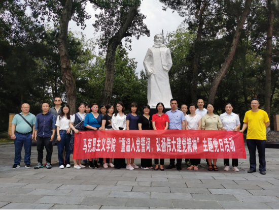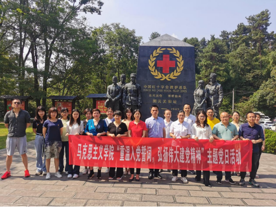 活动中,马克思主义学院党总支书记孟兰同志带领全体党员面对鲜红的党旗,在中国红十字会救护总队图云关旧址纪念碑前重温入党誓词,回顾入党庄严承诺,缅怀革命先烈的丰功伟绩、表达对革命先烈的崇高敬意。