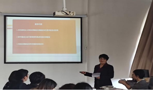 马克思主义学院石春艳老师以“党的纪律建设百年历程和经验启示”为主题,分享了教学技能大赛的经验体会,强调教学案例选取的重要性。外国语学院吉胜芬老师以省级“金课”《Red Star Over China:红军长征中的贵州记忆》建课为例,罗秋梅老师围绕“大思政课”MOOC平台课程《遵义会议指航程--The Way to Success》的设计思路,分享了课程建设经验。