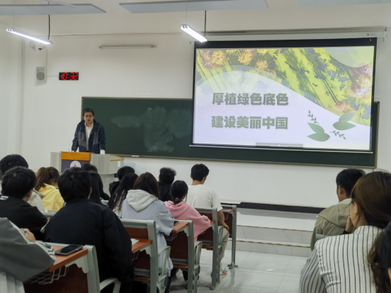 5月27日,副校长安艳玲以“厚值绿色底色,建设美丽中国”为题,为统计241、242、物理241班学生授课。她指出我国推进绿色转型,既是应对全球环境危机的必然之举,也是实现可持续发展、增强国际竞争力的关键所在。她以安吉村为例,诠释了绿色发展理念对于中国实现可持续发展的核心价值与重大意义,生动展现了习近平生态文明思想的成功实践,激发大家投身美丽中国建设的责任感与使命感。