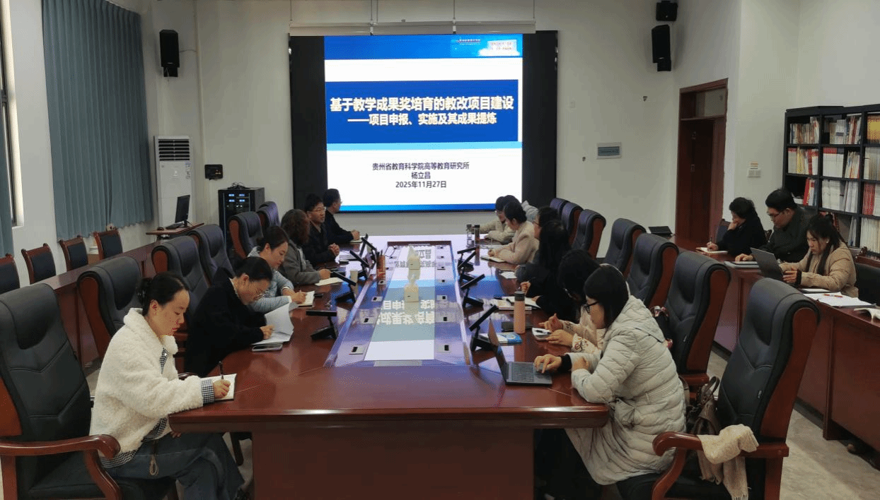 本网讯(马克思主义学院 张语熙/文 张建军/图)11月27日,马克思主义学院邀请贵州省教育科学院高等教育研究所负责人杨立昌教授作“基于教学成果奖培育的教改项目建设—项目申报、实施及成果提炼”的专题讲座。讲座由副院长杨立杰主持,全体思政课教师参会。
