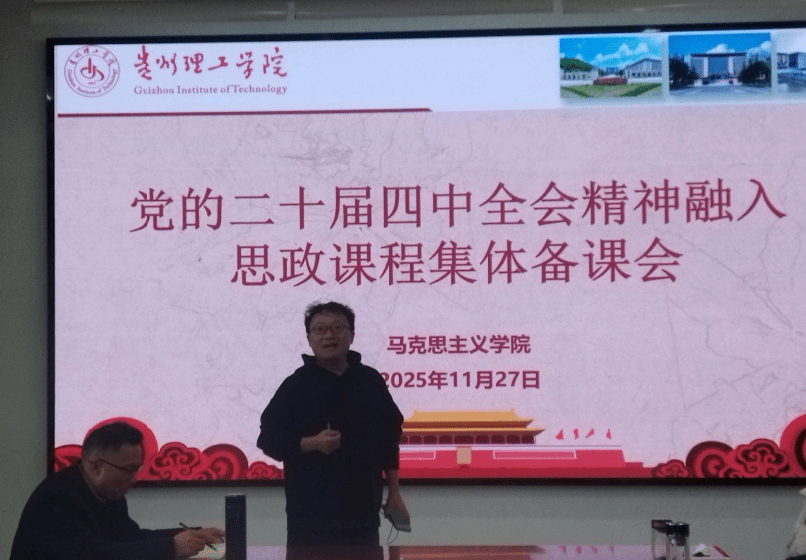 本网讯(马克思主义学院 吴园园/文、张建军/图)2025年11月27日下午,马克思主义学院在开物楼1507会议室开展党的二十届四中全会精神融入思政课程集体备课会,以集体智慧破解“为何融”“融什么”“如何融”的核心命题,推动全会精神与思政教学深度融合,切实提升教学质量与育人实效,全面落实立德树人根本任务。学院全体思政课教师参加会议。