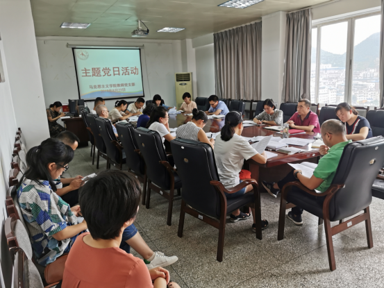 本网讯(马克思主义学院 王香莲/文 张建军/图)为进一步提升党员干部素养,使党员干部严守党的纪律,把守纪律讲规矩放在突出位置,2019年8月23日中午13:30,马克思主义学院教师党支部在1125会议室开展“学习党纪党规·聚焦职责底线”主题党日活动。党员领导干部以普通党员身份,带头参加教师党支部的主题党日活动。