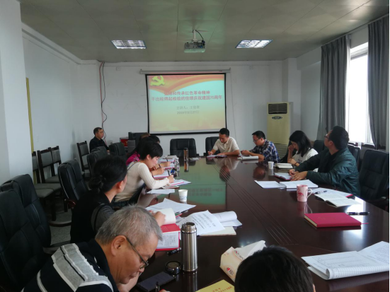 在读书分享会上,正处级组织员王忠奎同志领学《“不忘初心、牢记使命”主题教育红色故事集》之“追寻红军的侗族诗人-杨和钧”红色故事,并以“庆祝建国70周年 传承红色革命精神”为主题讲专题党课,对全体党员进行革命传统教育。
