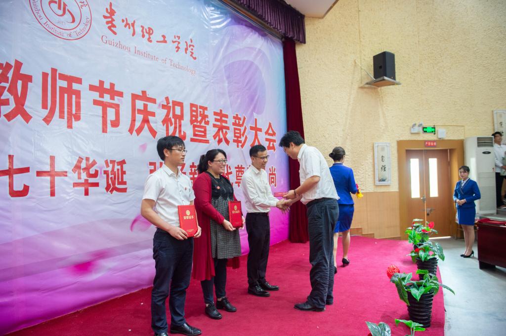 9月10日上午,贵州理工学院2019年教师节庆祝暨表彰大会在逸夫小报告厅举行。大会对获评“2019年学生喜爱的青年教师”“2017-2018学年优秀辅导员”“2018年度师德先进个人”“2019 年优秀教育工作者”“2019年优秀教师”“2019年教学名师奖获得者”进行了表彰,向7名三十年教龄的教师颁发了荣誉证书。