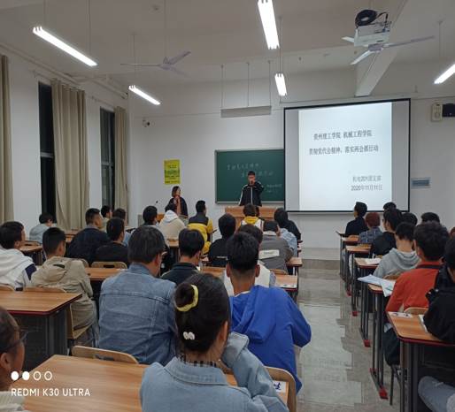 11月13日,机械工程学院机电201团支部在G2409教室召开“贯彻党代会精神,落实两会抓行动”主题团日活动,机电201团支部全体同学、学院团总支副书记卢缨老师参加了此次团组织生活,活动由团支部书记徐良同学主持。