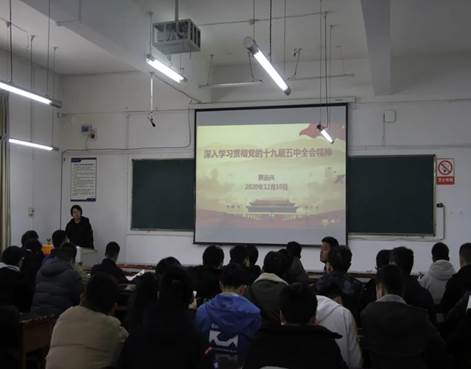 为学习和贯彻党的十九届五中全会精神,12月10日,机械工程学院党总支书记熊远兴在三教113教室为机电183班、机自181班同学作党的十九届五中全会精神宣讲报告。