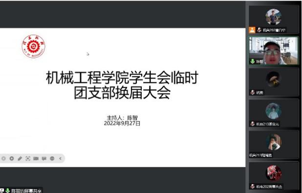 2022年9月30日,机械工程学院学生会线上召开临时团支部成立大会。会议由学生会主席陈智主持,邀请了学生科张小千老师参与指导。