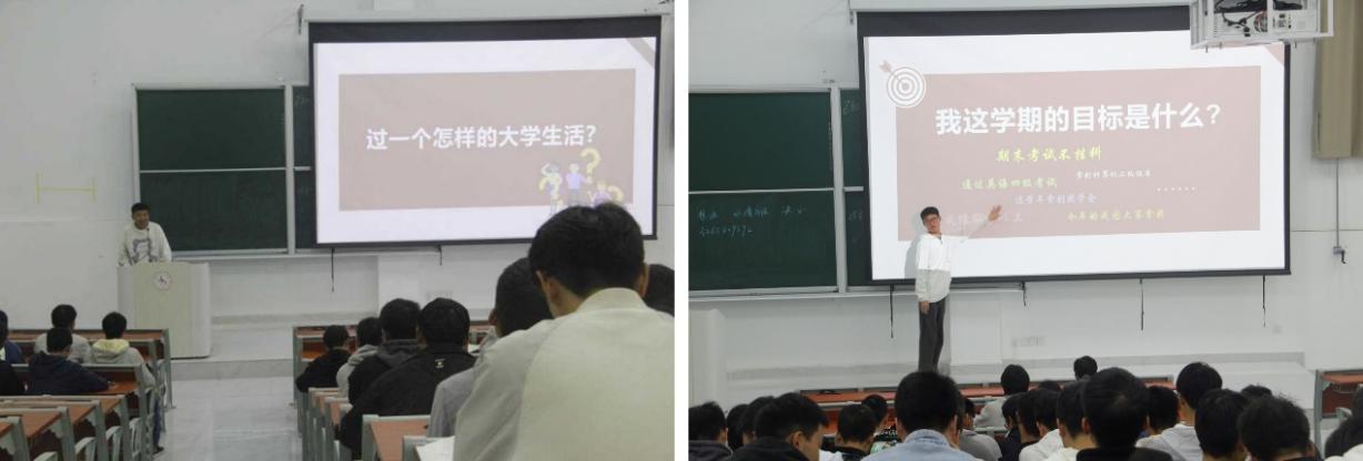 申振同学首先给大家介绍了“机械设计制造及其自动化”与“机械电子工程”两个专业的基本情况,帮助同学们对自身专业有了一个更好的认识。紧接着,他带领大家对如何过好大学生活进行了讨论,希望大家早日定下大目标,逐渐将大目标分解成一个个小的目标,并为之努力奋斗。他还通过对“有志者事竟成”中“志”的解释向同学们讲述了他的体会,他谈到:“志”不仅仅是想法、目标,更是实现目标的方法与决心。最后,申振同学给大家介绍并分析了时间管理能力、独立思考能力、人际交往能力、解决问题能力以及动手能力等大学必备的基础能力。申振同学呼吁:“我们每一个人都应该记住我们作为一个学生的首要任务,要积极主动地去学习,奋发向上地去拼搏。”