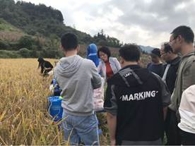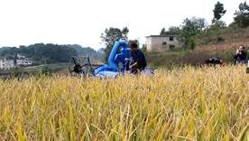 ——小型山地多功能水稻收还一体机进行稻田测试.